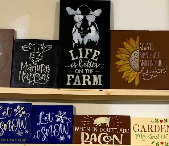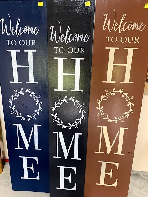 We make all kinds of wooden signs. The Home Sweet Home is 4 feet tall and 10" wide. ($40) The Believe Signs are 4 feet tall and 5" wide. ($20) All items can be made to the size you desire. Contact us for a particular item's price.